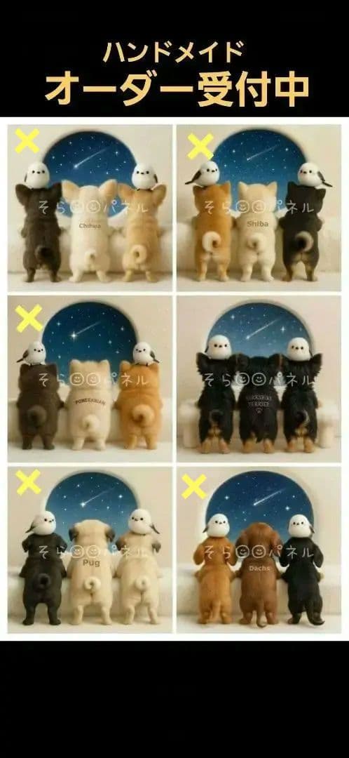 激レアソーイングパグ、柴犬、ポメラニアン、チワワ、パピョン、トイプーパネル生地