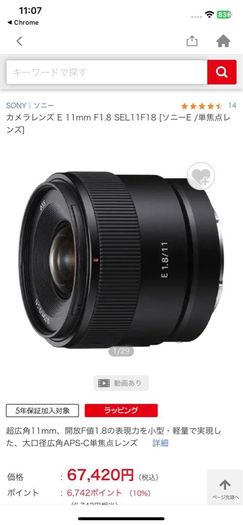 SONY E 11mm F1.8 レンズ