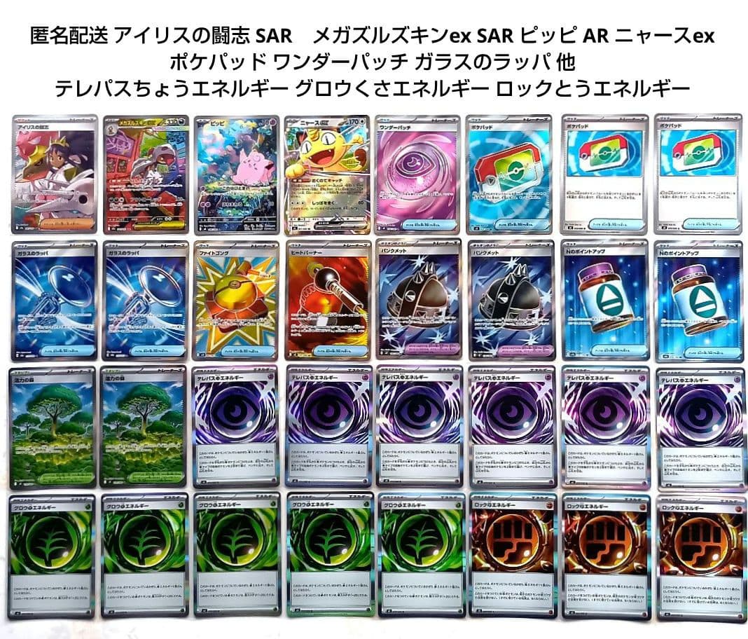 ポケモンカード エーフィex sar 4枚セット テラスタルフェスexプレイで使用せずコレクションファイル内で保管していたカードになります。プレイ用でお願い致します。また、ホロかけありますかや白カケありますかという質問も、トラブル防止のためお答えできません。濡れ・折れ防止して送らせていただきます。他に購入前に気になることは、事前のコメント宜しくお願い致します。ポケモンカード メガドリームex 2BOX シュリンク付き。目立った大きな傷は見当たりませんが、細かな傷や点カケ・白カケあります。リーリエの全力 SR SM11b ドリームリーグ 068/049。ピカチュウEX SR 234/193。完全美品お求めの方はトラブル防止のためご遠慮ください。エーフィマスボミラー psa10。ワンオーナー品 伝説の鼓動 未開封ボックス シュリンク付き。必ずプレイ用での購入お願い致します。即購入⭕️ミュウツーex 25th 【PSA10】。PSA9トウホクのピカチュウ。もしご興味ありましたら、他の私のカードの出品の品を下記よりご覧ください#左ショータローズポケカ こちらの商品は即決可能ですので、気になられた方はコメントなく購入大丈夫です。シロナ SR SM8b GXウルトラシャイニー 153/150。ス*認様 ベルのまごころ SAR PSA10。#ポケモン#pokemon#ポケモンカード#ポケカ #リザードンex#vstarユニバース#ピカチュウex#サザンドラex#ゲッコウガex#超電ブレイカー#ポケモンセンター#クレイバースト#ナンジャモ#ナンジャモsar#トリプレットビート#バイオレットex#スカーレットex#151#マスターボール柄#ルチアのアピール#古代の咆哮#未来の一閃#キチキギスex#プレシャスキャリー種別シングルカード種別シングルカード種別複数カード種別複数カード種別複数カード種別複数カード種別複数カード種別複数カード種別複数カード種別複数カード種別複数カード種別複数カード種別複数カードお店の情報