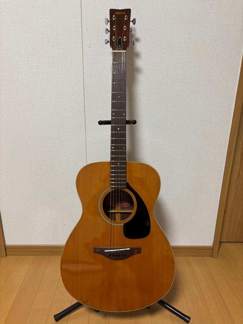 ヤマハ オレンジラベル シリーズ’78年製 ヤマハFGのオレンジラベル(小さなボディー)。 オレンジラベルは’78年以降のモデルで、ヘッドの形がヤマハVヘッドに戻っています。このころLシリーズが登場しています。かなりミント状態のフルオリジナルで、ヤマハ刻印のペグが付いています。 音は、小さいボディーながら鳴りが大きく、きらびやか高音です。ヤマハの旧シリーズはどれも胴鳴りで有名です。この頃の合板は近年のものと違って、三枚重ねの真ん中の材も同じ材を使っているので良く鳴ると思われます。実際、ジャパンビンテージらしく激なりです。時代のわりには、とても綺麗な個体です。よく見ると、ブリッジの下に微かにステッカー跡あり。ギター本体のみです。宜しくお願い致します。DETA■表板/えぞ松■裏板/サペリ■側板/サペリ■ネック/ナトー■指板/パリサンドル■フィニッシュ/ナチュラルご覧いただきありがとうございます。。美品 HEX guitars N400 llic deep purple。限定値下げ Fender standard stratcaster SSH。gfc ジーエフシー GPR-350 美品ギグケース付き ほぼ未使用エレキギター。早い者勝ち #12ストラトキャスタータイプ ニトロセルロースラッカー塗装。FERNANDES / フェルナンデス テレキャス RTL-502。バンドリギター /ランダムスター。Bacchus SGS-ASH/RSM BAW(Black and White)。【個人工房製】ストラトキャスタータイプ P-90。激レアepiphone aquamarine gibson es-355 セミア。ギター HISTORY HST/SSH-performance。【ケース付】Fender japan Stratocaster ミニギター。ギター ESP LKH202BLKLH LTD Kirk Hammett R003-01。FERNANDES REVOLVER FR-100 モンキーポッドお店の情報