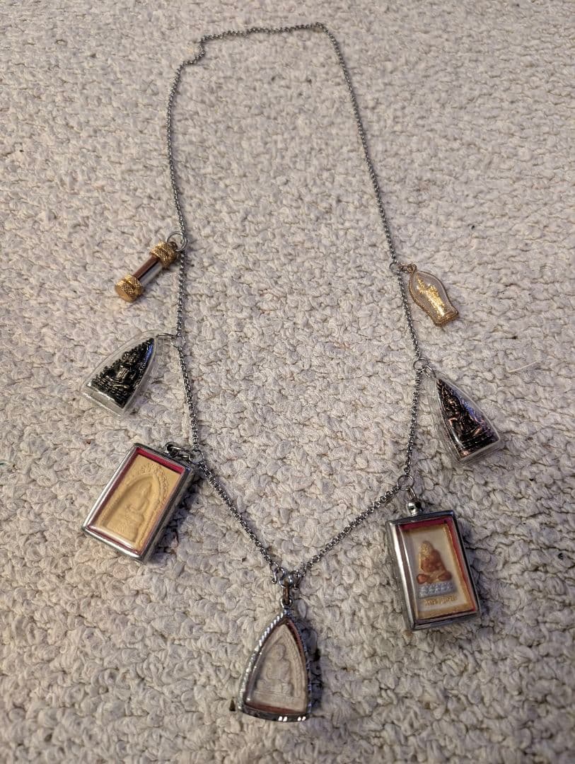 既存の権力や体制への反抗を示す「DEFY」を刻む70'sスタイルの真鍮skullに無漂白のラッキーラビットフットチェーン部分には革紐に真鍮・ホワイトハーツ・ボーンビーズ 留め具にシェブロンビーズ 仕様のハンドメイドネックレス《首周り40〜 最大68cm》ーーー・【ラッキーラビットフット】多産であるウサギは「生活力のシンボル」でありまた目を開けて生まれてくる事から「邪眼に対する防護の力を与えてくれる」と狩猟民族のアングロサクソンの人々に古きよりお守りとされていたラッキーラビットフットは移民によりアメリカに渡り1940年〜60年代に罠にかかったウサギが足だけ残し逃げのびた逸話から、もし怪我を負ったとしても命まで失う事はないとバイカー達が好んでつけた事により広く知られる事になりその文化は今でもアメリカに限らずオールドバイカー達に脈々と受け継がれていますーーー・(注意・お願い)‼️【重要】コメントされる場合や当方と初めてのお取り引きの方は必ずプロフに目を通したのちにお願いします(プロフ 必読)またご購入いただいた場合はプロフを読まれてのお取り引きとしてお取り引きを進めさせていただきます‼️【重要】〜値引き依頼やオーダー等はお受けしておりません、その類いのお問い合わせはお控え下さいまたそれらの類のお問い合わせはこちらの記載をもって返信を省かせていただきプロフ記載に添って対応させていただきます❗️ポスト投函宅配での発送になります購入前に+310円で手渡し宅配に変更することも可能ですポスト投函宅配における配達後の盗難・破損は対応出来ませんのでお気をつけ下さい❗️発送時革紐にミンクオイルを塗布して発送させていただきます❗️ハンドメイド出品につき「やや傷や汚れあり」にて出品です・デリケートな方・既製品クオリティーをお求めな方購入お控え下さい❗️The product description described and the precautions described in the profile are very important, if you can't read it because it is written in Japanese Please don't buy itお店の情報