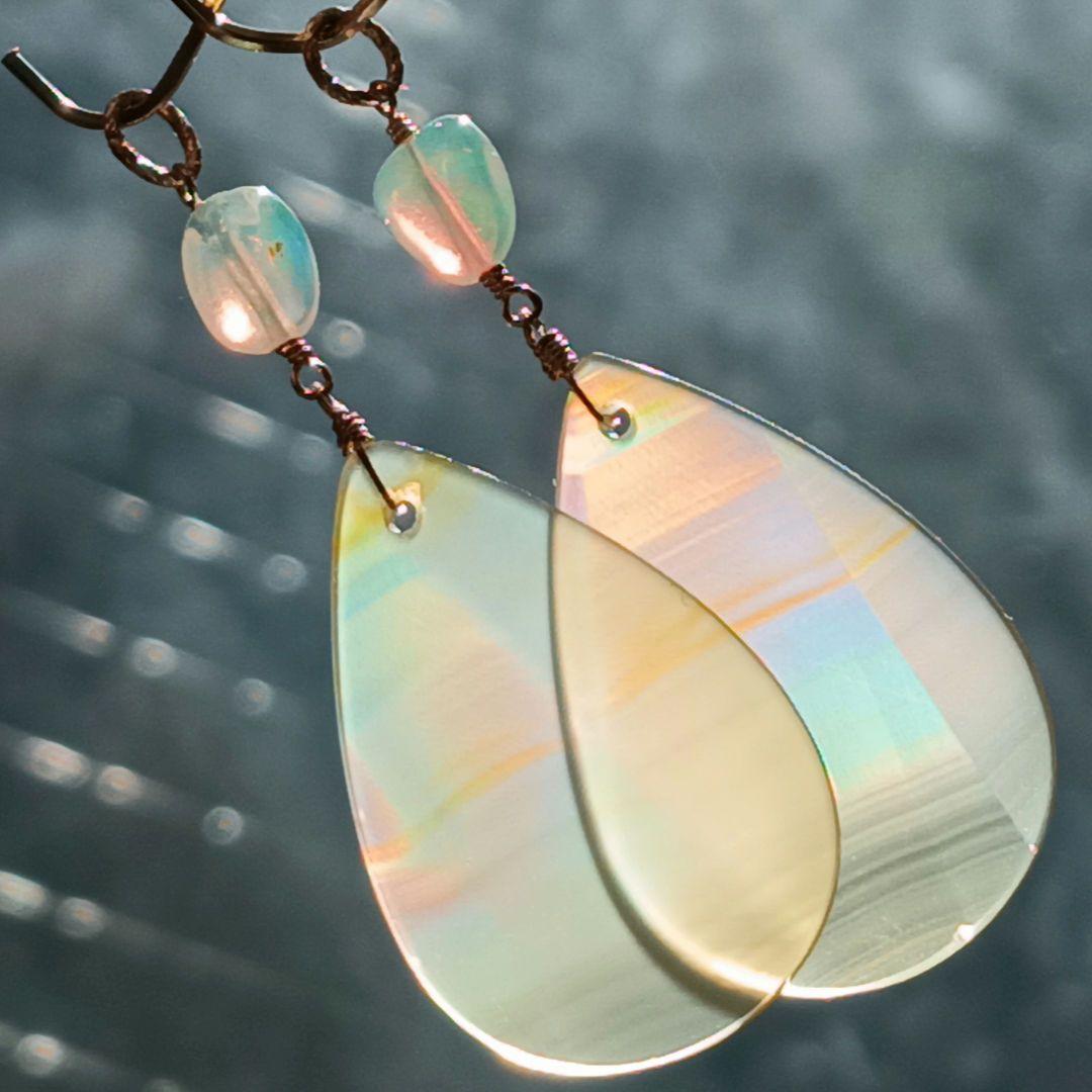 レッド デットストックガラスカボション スワロフスキー ロング ピアスイヤリング