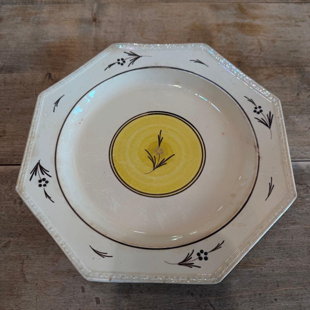 ご覧いただきありがとうございます。時代物 有田焼 光岡製 皿 金彩色絵葡萄紋 アンティーク。扇の中には、躍動感のある「龍」と優雅な「蝶」が交互に配された、非常に贅沢な構図です。昭和レトロ オールド東陶 (東洋陶器製) 白磁木の葉模様皿。• 銘: 裏面には、優品に記されることの多い「奇玉宝鼎之珍」の略本款がございます。ブオンリコルド イタリア製絵皿 1998 リヴォルノ。鑑賞用に長年自宅保管されたものです。チェスティ好きにはたまらない♡ポーセラーツ お花のティーセット。すり替え防止およびトラブル回避のため、発送後のご購入者様都合によるキャンセルや返品はご遠慮いただいております。ベージュの陶器製四角形プレート。コレクション整理のため、見事な意匠の古伊万里 大皿を出品いたします。【見どころ】• 希少な意匠: しっとりとした青磁の上に、染付で「扇面散らし」が描かれています。チイラボ プレート お皿 ハンド 手。BL18★★ プレート 皿 1枚 食器 直径22㎝。• 八角の大迫力: 末広がりの「八」に通じる縁起の良い八角形。幅33cmの特大サイズは、食卓を彩る主菜皿としてはもちろん、絵皿として飾っても圧倒的な存在感を放ちます。ブオンリコルド イタリア製絵皿 1970年代 certosa di pavia。ヴィンテージ カットガラスコンポートプレート ガラス製盛り皿。【寸法】幅:約33cm / 奥行:約33cm / 高さ:約7cm【状態】• アンティーク品(骨董)のため、経年によるスレや底部の汚れ、製造時からの振出(黒点)やピンホール等はございますが、大きな欠けやニュウ(ヒビ)はなく、年代を考えると良好な状態です。裏面の縁(高台)には、傷防止・保護用のフェルトが貼られております。新品 未使用 たち吉 蘭ちらし 中皿 5枚セット。ブオンリコルド イタリア製絵皿 1986 AGROPOLI。• 箱は付属しておりません。【発送】貴重な御品ですので、緩衝材を十分に使い、破損のないよう厳重に梱包して発送いたします。織部の名手 佐藤和次作 織部六角大鉢。ブオンリコルド イタリア製絵皿 2003 RECCO。お店の情報
